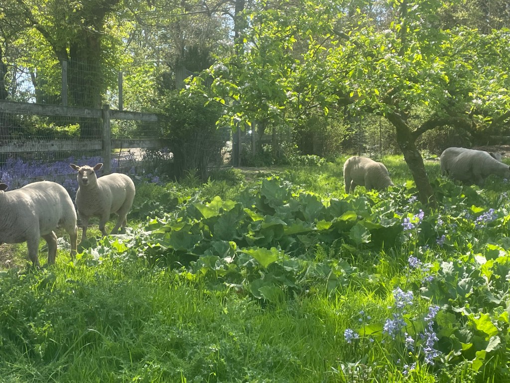 Another new addition to the farm this spring has been sheep, we are thoroughly enjoying their footprint on the farm, no mowing and the associated carbon footprint and work involved whilst fertilizing at the same time…