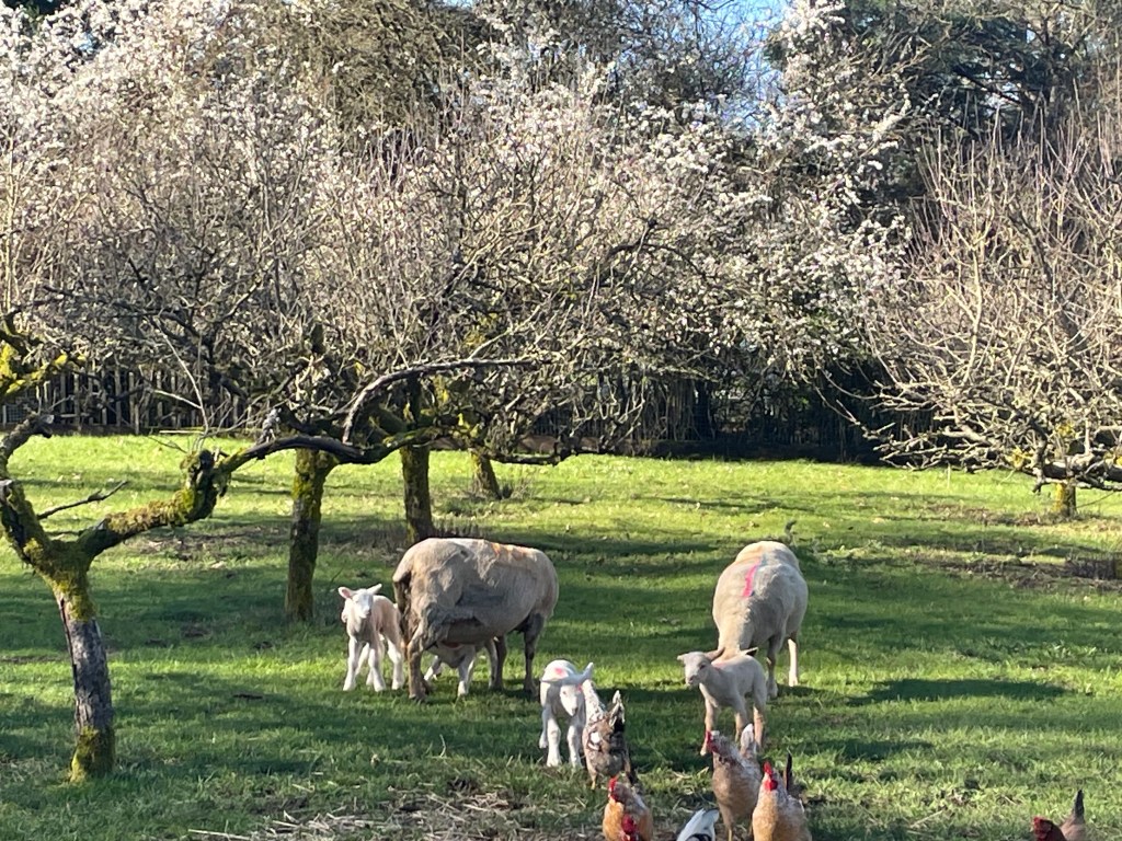 As well as the tree blossoms, my daughter Constances’ presence on the farm is adding fantastic colors, everywhere I look, with her masses of flower plantings