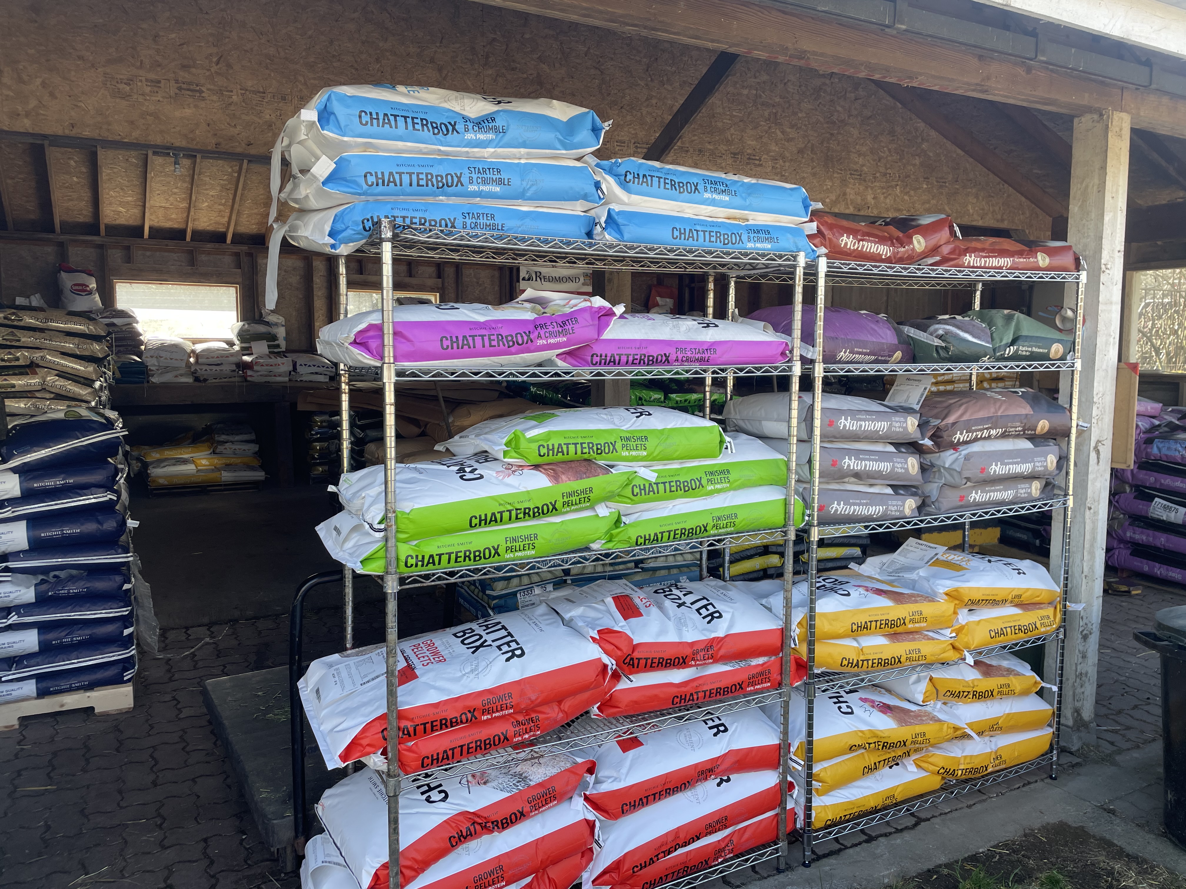 Meanwhile my son Stuart has brought his work ethic, brains, energy and ideas into the farm store to my great relief. Norman and I are playing more of a supporting role these days. In an effort to not put all our eggs in one basket we have expanded our range of feeds by including locally owned and run Ritchie Smiths feeds, helping ensure a supply of livestock feeds from more then one source in these fast changing times.